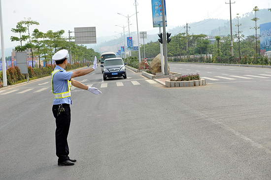 6月19日上午,梧州交警在園博會現場引導車流。賓佳欣 攝