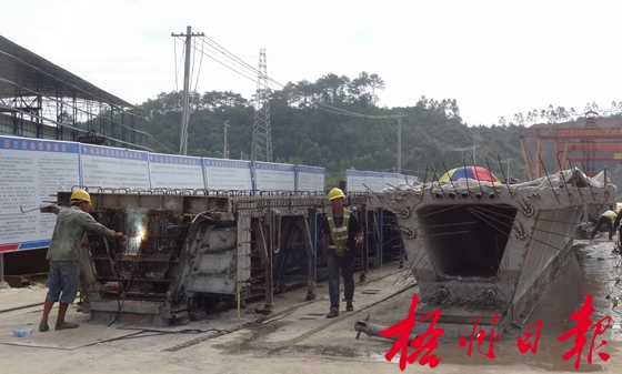 6月18日,在梧柳高速公路一標(biāo)段長洲區(qū)倒水村制梁場,工人正在焊接模板。據(jù)悉,截至5月底該高速公路項(xiàng)目完成年度計(jì)劃投資的51.9%。 黃東榮 攝