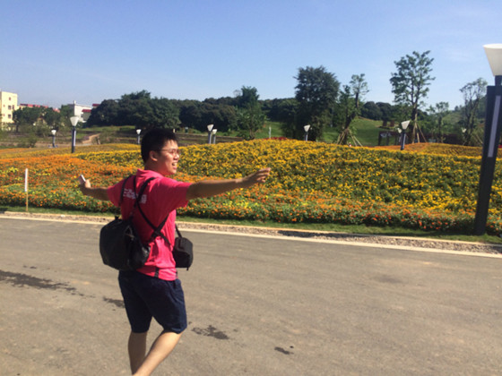 剛出梧州園,先遣團(tuán)一行陸續(xù)進(jìn)入河池園、玉林園、賀州園等園區(qū)踩點(diǎn)。藏寶人再次玩神秘,撇下眾人獨(dú)自游覽,卻游得不安分。這會(huì)到河池園的斗笠民俗墻東翻翻西敲敲,那會(huì)又到玉林園那仿原始叢林的人造天橋上走走,或是流連園博園廣場(chǎng)漫山遍野的花海,久久不肯離開。