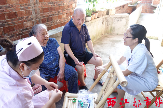????一上午的時間,劉雪霞共為山上9位需要上門的老人進行了家庭醫生式服務,像這樣的事情還有很多。在社區基層從醫12年,劉雪霞與護士們一樣,經常脫下白大褂開著摩托車、挑著小板凳到現場,再披上白大褂為老人們做免費檢查和簡單診療,從步埠路頂到西環坡頂,轄區的每一個群眾聚集點,都是他們為居民開設的“健康課堂”。 |
