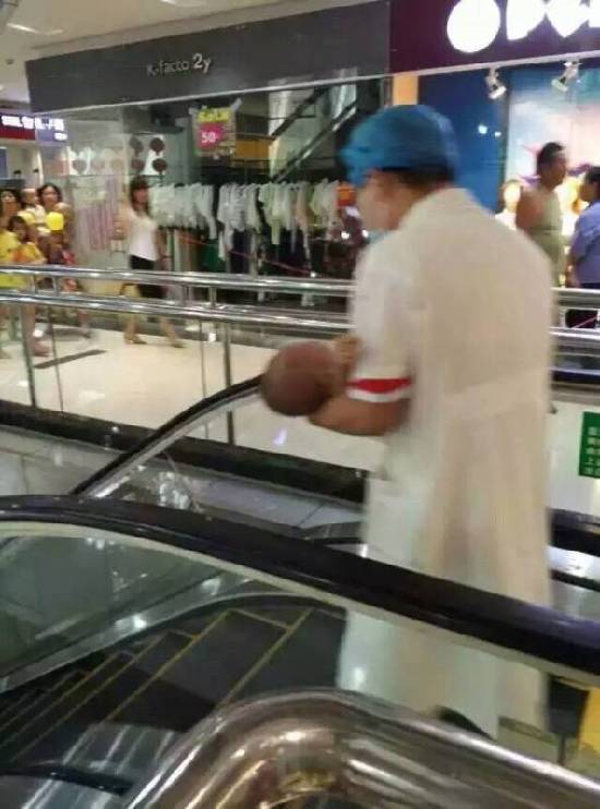 ????記者趕到現場時,受傷幼童已經被送往醫院救治。據太陽廣場物管人員介紹,現場有兩個監控攝像頭拍到事發經過。記者申請查看了這兩段視頻,其中一個監控錄像顯示,早上10點左右,受傷小孩赤著腳由兩名長輩帶著,在3樓下行電梯轉角的空地處玩耍。10點14分,小孩家長坐下休息,讓小孩獨自玩耍,小孩便邊玩邊走向3樓下行電梯處。10點16分17秒,小孩跑近正在運行的扶手梯,與正在下行的扶手梯逆行,片刻間,左手就被夾進電梯里。過了將近20秒,家長發覺孩子不見了,忙起身尋找,這才發現已被扶手梯夾住的小孩。隨后,一名據說是商場保安員的灰衫男子趕過來,按下扶手梯旁的停運按鈕。