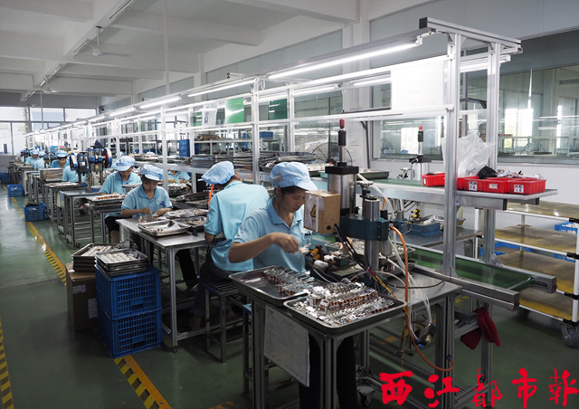 廣西睿奕科技發(fā)展有限公司多條生產(chǎn)線正“火力全開”。西江都市報記者 陳健新/攝