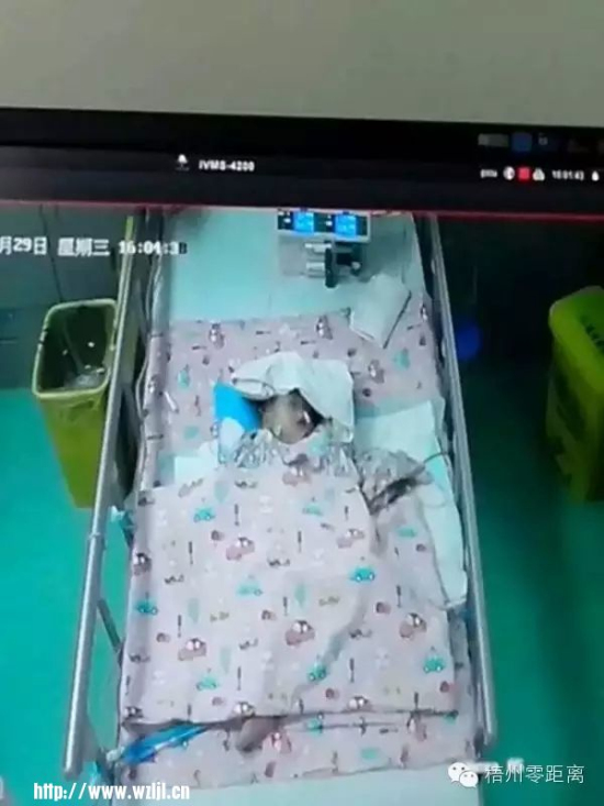 意外發(fā)生后,小文強在重癥監(jiān)護病房內接受觀察治療。圖為石女士7月29日翻拍監(jiān)控屏幕畫面。