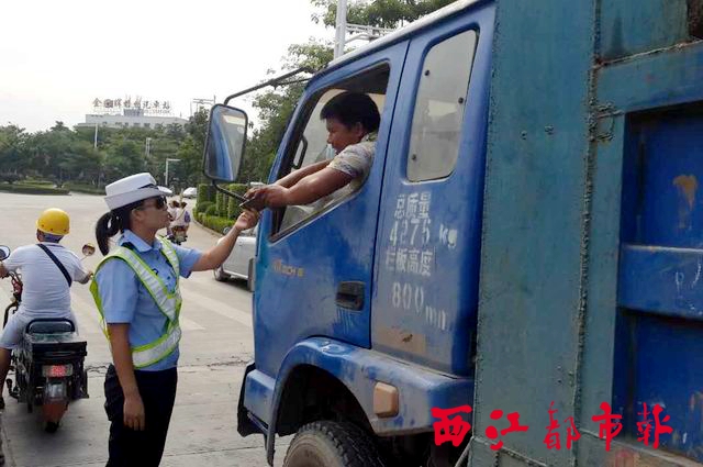????當(dāng)天下午,長(zhǎng)洲交警大隊(duì)正在新興三路凱萊大酒店對(duì)開路段設(shè)卡查車,整治運(yùn)輸車輛的各類交通違法行為。16時(shí)30分左右,交警人員攔下了一輛外地號(hào)牌的中型貨車。由于該車違反了《道路交通安全法》中有關(guān)貨物長(zhǎng)、寬、高方面的規(guī)定,交警人員依法對(duì)貨車司機(jī)進(jìn)行了處罰和教育。“這么小的違章你們都要罰我。”盡管接受了處罰,但貨車司機(jī)還是有些不服氣地說道。