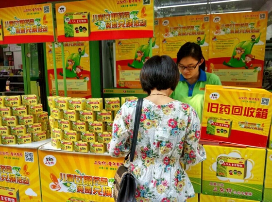 ??? 孩子健康是每個(gè)家長的頭等大事,用藥安全更是家長們最為關(guān)注的話題。8月23日、24日,由廣州王老吉藥業(yè)聯(lián)合梧州嘉進(jìn)連鎖,開展了“關(guān)愛兒童,健康用藥”三公仔愛子有方免費(fèi)兌換兒童過期藥品公益活動(dòng),市民只要拿家中過期的兒童藥品到梧州嘉進(jìn)連鎖百福堂藥店,即可兌換成王老吉藥業(yè)生產(chǎn)的三公仔小兒七星茶。