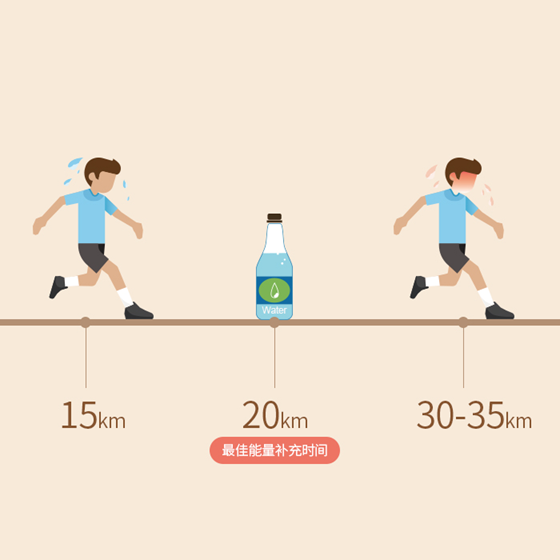 ????所以,跑馬最重要的就是恢復(fù)體能。最佳的能量補(bǔ)充時(shí)間在20公里后。補(bǔ)什么,當(dāng)然先補(bǔ)水,皮膚水當(dāng)當(dāng),紅潤(rùn)有光澤。跑前一小時(shí)應(yīng)補(bǔ)充500毫升水分,跑步過(guò)程中每隔20-30分鐘定時(shí)補(bǔ)充水分。不然就會(huì)出現(xiàn)脫水現(xiàn)象,肌肉痙攣、頭暈、肌肉疲乏。