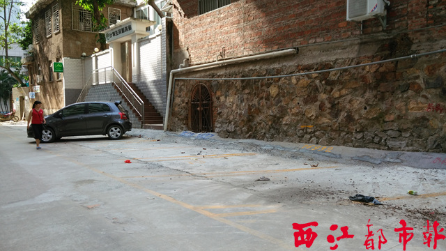 ????8月21日,記者在現(xiàn)場看到,在靠近計生服務(wù)站一側(cè)的寬約4米、長約40米的區(qū)域,已用黃色油漆劃出了一個停車區(qū)域,部分區(qū)域還寫有相應(yīng)的車牌號。