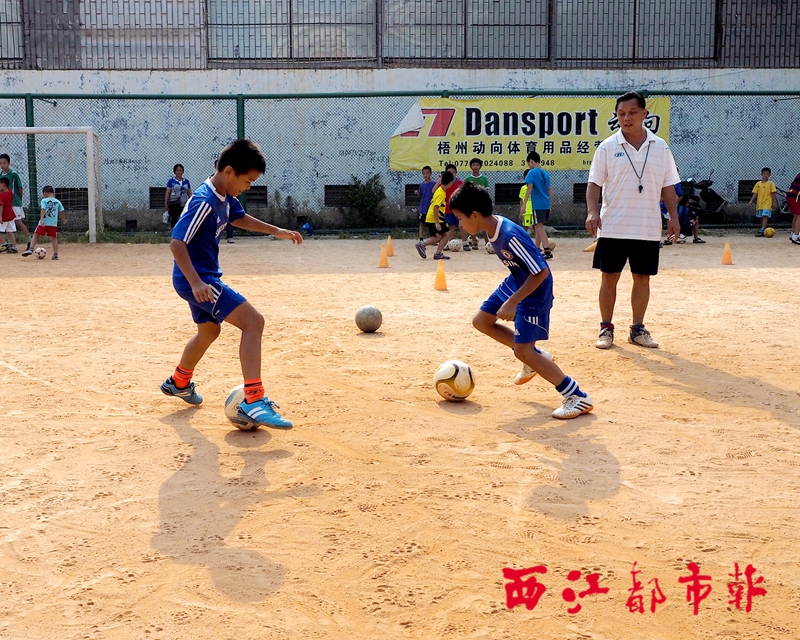 ????烈日下的大校場,一群少年正在教練的帶領下訓練足球。其中,三名模樣相似、配合默契的孩子尤其引人注目,他們是黃羽飛、黃羽祥、黃昆三兄弟。梧州市青少年體育運動學校足球教練歐少雄介紹,一年多前,兄弟三人一同被富力切爾西足球學校錄取,這在梧州足球界算是個新鮮事。暑假里,黃家三兄弟的時間大部分都用在了足球訓練上。