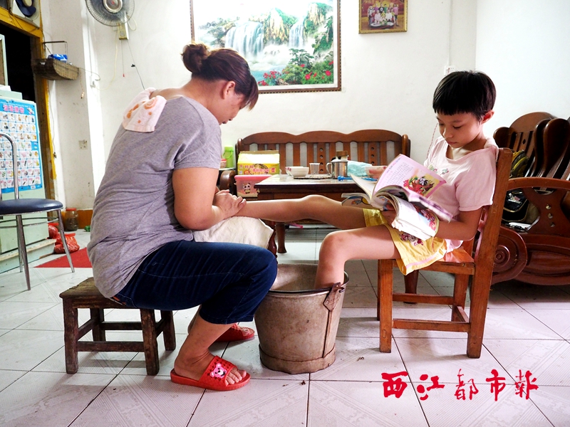 ??? 面對這令人難以接受的現實,慧恩父母并沒有放棄,而是給予女兒更多的關愛和呵護,并全身心投入小慧恩的康復治療中。多年來,慧恩媽媽專職在家每天為小慧恩用藥水洗腳、按摩和做康復鍛煉。