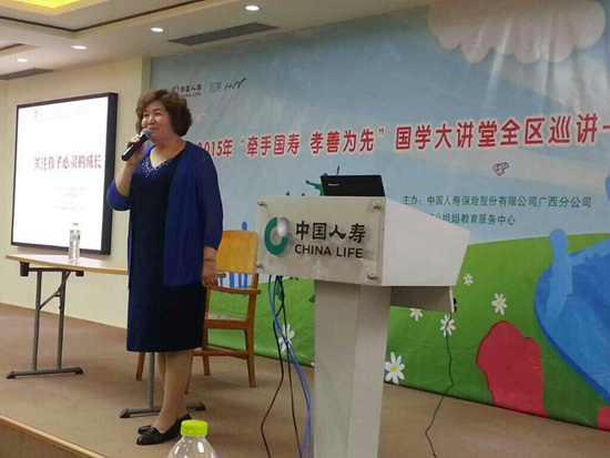 ?? 為了讓更多的客戶享受我公司的增值服務(wù),讓中國(guó)人壽關(guān)愛少兒心理健康的服務(wù)理念更加深入人心,同時(shí)為銷售搭建與客戶溝通的平臺(tái),中國(guó)人壽梧州分公司于2015年8月22日下午在梧州分公司九樓會(huì)議室隆重舉辦“牽手國(guó)壽 孝善為先”知心姐姐巡回大講堂活動(dòng)。本次活動(dòng)是全區(qū)知心大講堂巡回演講的第三站,受到了梧州分公司的銷售伙伴和客戶們殷切期待,當(dāng)天下午有103位客戶和61位業(yè)務(wù)經(jīng)理共 164人參加了此次講座。梧州分公司莫琳副總經(jīng)理出席講座作領(lǐng)導(dǎo)致辭,并全程參加了講座。講座現(xiàn)場(chǎng),由全國(guó)著名的知心姐姐心理健康教育巡回報(bào)告團(tuán)—楚艷玲女士,為客戶們深入淺出地講解“關(guān)注孩子心靈的成長(zhǎng)”、“關(guān)注孩子的生存智慧”、“關(guān)注孩子主動(dòng)生活的能力”等多個(gè)家庭教育主題課程。老師講課風(fēng)趣幽默,寓教于樂,并與在場(chǎng)的客戶互動(dòng)密切,全場(chǎng)不斷傳來熱情洋溢的掌聲,同時(shí)講座中設(shè)置有獎(jiǎng)互動(dòng)、將活動(dòng)的氣氛推向了高潮。此次活動(dòng)進(jìn)一步讓客戶加深對(duì)中國(guó)人壽的服務(wù)感知,提高國(guó)壽客戶對(duì)公司的忠誠(chéng)度和滿意度。