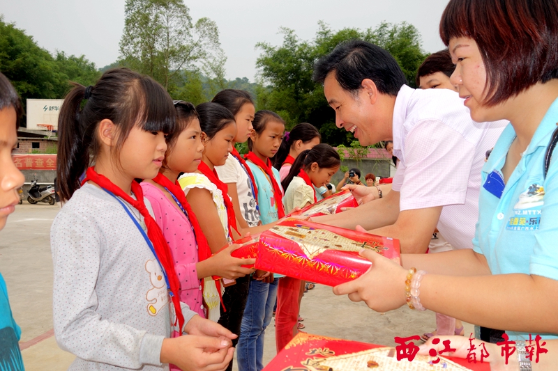梧州日報社黨委聯(lián)合社會愛心家庭代表向路垌村困難兒童捐贈愛心月餅。