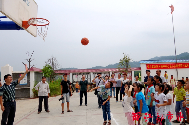 困難家庭兒童與愛心家庭小朋友開展投籃趣味活動。