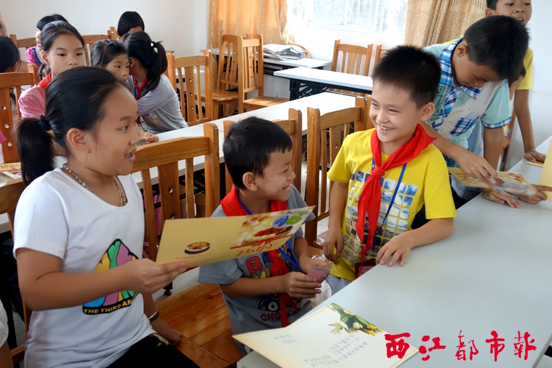 ????為了讓愛心家庭代表與困難家庭兒童加強(qiáng)互動,路垌村駐村第一書記葉永梧把大家召集在一起,愛心家庭的小朋友主動地坐到貧困兒童旁邊,還掏出此前寫好的心意祝福卡送給對方。