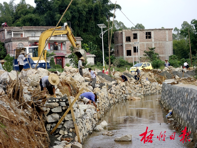 9月10日,在龍圩區大坡鎮交村,工人們正開展河道整治工程。曾燕 攝