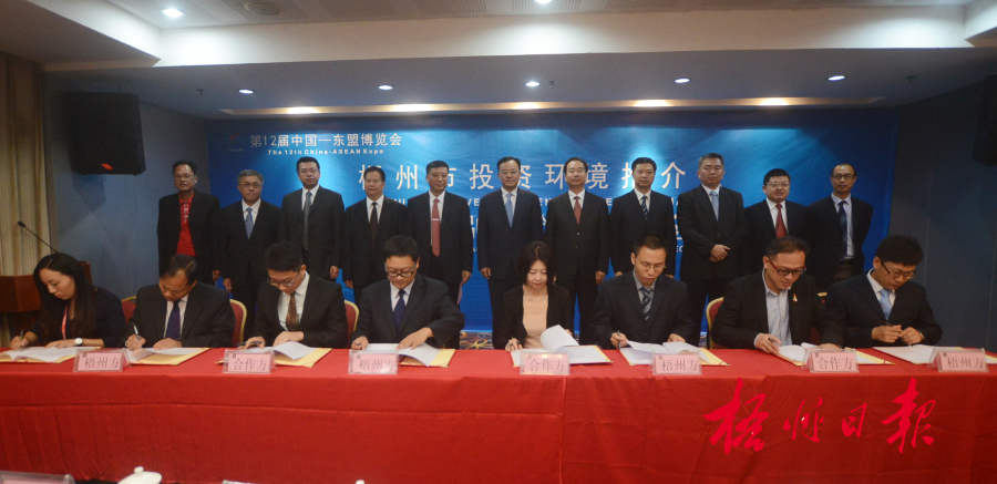 9月18日下午,梧州市投資環(huán)境推介會(huì)暨粵桂合作特別試驗(yàn)區(qū)項(xiàng)目簽約儀式在南寧市舉行。市委書(shū)記黃俊華、市長(zhǎng)朱學(xué)慶等市領(lǐng)導(dǎo)以及近百名受邀的企業(yè)代表、嘉賓出席推介會(huì),并見(jiàn)證項(xiàng)目簽約。 李鴻榮 攝