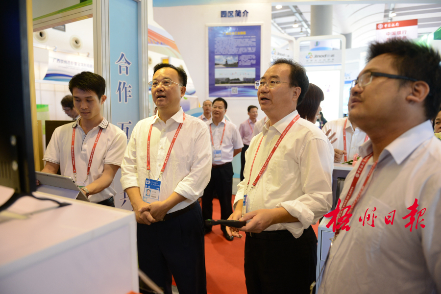 ????9月18日,市委書(shū)記黃俊華、市長(zhǎng)朱學(xué)慶等市領(lǐng)導(dǎo)先后來(lái)到南寧國(guó)際會(huì)展中心、廣西展覽館(分會(huì)場(chǎng))的梧州企業(yè)展區(qū)參觀指導(dǎo),了解企業(yè)參展、產(chǎn)品銷售、貿(mào)易洽談等情況。 李鴻榮 攝