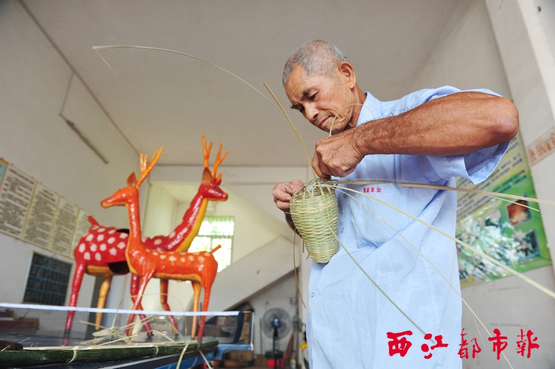 ????廖漢雄一邊向記者介紹著“鹿兒”的制作過程,手里卻沒有停下來。只見事先準備好的篾片在他靈巧的雙手間舞動,嫻熟的編織手法、專注的神情,讓人感受到手藝人對藝術精益求精的執著。
