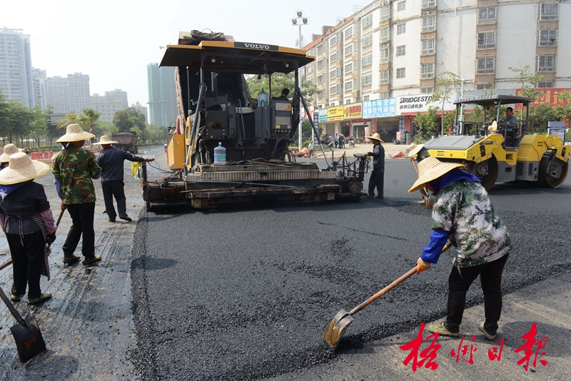 ????9月29日,在舜帝大道,工人正在鋪設柏油路面。