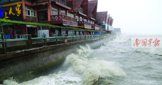 “彩虹”掀起的風浪侵襲北海北岸。廣西新聞網-南國早報記者 陳羽攝