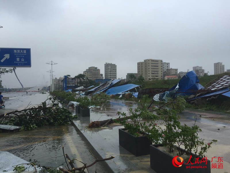 10月4日下午2時(shí)10分,臺(tái)風(fēng)“彩虹”登陸肆虐廣東湛江,正處于臺(tái)風(fēng)眼里的湛江市區(qū)到處一片狼藉。馬俊 攝