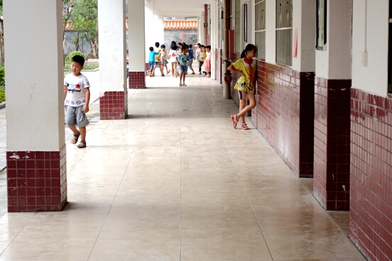 學校一樓的走廊地面鋪設了地磚。龍天傳/攝????