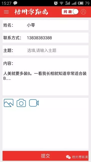 ????報名方式:下載安裝梧州零距離APP,在應(yīng)用的“爆料”功能里輸入個人信息和一段說服小零選擇你的理由,然后提交即完成報名。