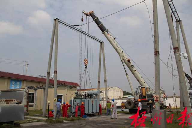 ????10月9日,蒼梧縣水利電業有限公司工作人員在35千伏古鳳變電站開展主變壓器增容作業。