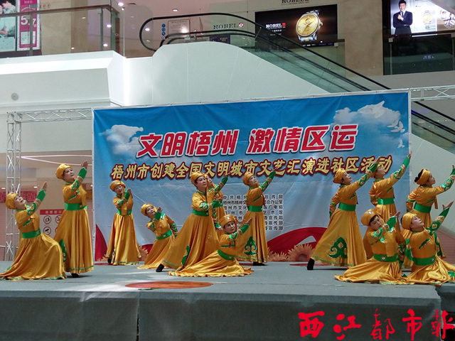 ????近日,一場(chǎng)主題為“文明梧州 激情區(qū)運(yùn)”的文藝演出在旺城廣場(chǎng)負(fù)一層舞臺(tái)舉行,梧州市老年大學(xué)的演員為觀眾表演了舞蹈、魔術(shù)等精彩的節(jié)目,博得大家陣陣掌聲。