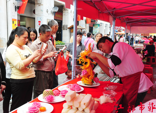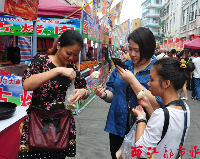 ??? 11月6日,在騎樓城舉辦的嶺南美食節首日,來自五湖四海的美食齊聚美食街,滿街芳香撲鼻,讓人口水直流。慶豐包子、印度飛餅、椰子冰淇淋、臺灣綠林肉卷、冒菜、巧克力盆栽奶茶等外地美食讓人食指大動,而本土美食田螺、牛雜、紙包雞等同樣引人垂涎。市民們不必去到天南海北,來嶺南美食節就可嘗到眾多特色美食。