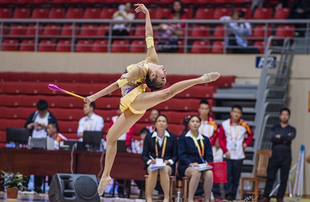 本屆區運會的吉祥物“龍龍”、“和和”出場參與表演。記者?何鎏/攝
