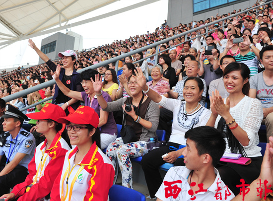 ????來自蒼梧縣京南鎮的60歲老人李忠建,當天早早地從鎮里趕來等候開幕式的開始。觀看節目的時候,他數次情不自禁地熱烈鼓掌。他告訴記者,整場開幕式表演,從演員到服裝到音樂,都充滿歡快感,他特別喜歡。“例如,最后表演的節目《梧州追夢》,演員們穿著五彩繽紛的服裝在操場上邊唱邊跳,讓人感覺特有活力。”李忠建笑著說。
