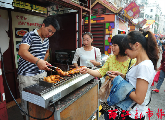 美食節中的雞翅包飯獨具特色,吸引市民游客購買。西江都市報記者 陳健新/攝
