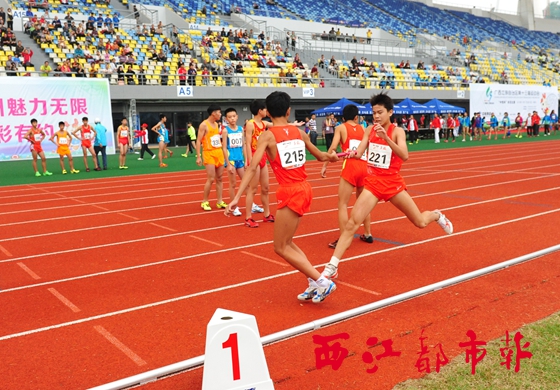 ????下午,女子丙組4×400米決賽首先開始。梧州隊的四名運動員實力強勁,在第一棒就確立了領先優勢,毫無懸念將金牌收入囊中。而在男子丙組4×400米決賽中,桂林隊成為梧州隊最強大的對手。在比賽中,雖然梧州隊始終占據頭名,但桂林隊卻憑借著強大的沖刺能力,屢屢與梧州隊齊頭并進,經過一番比拼,隊員實力較為平均的梧州隊奪得了金牌。