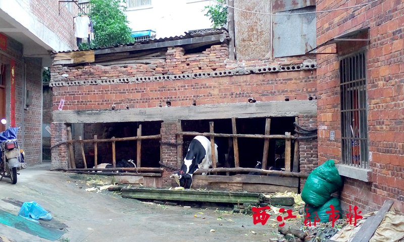 ??? 西江都市報訊(記者 龍天傳)于人口密集的城市而言,并不是飼養家禽家畜的最佳場所。然而,梧州市長洲區的一處城中村內,卻有村民在此飼養數頭奶牛多年,且牛棚僅與居民小區一墻之隔。如今,如何消除飼養奶牛產生的異味,讓一眾小區居民倍感頭痛。