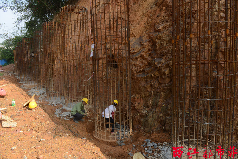 ??? 11月20日,在白云路,施工人員正在加固部分支護(hù)樁。據(jù)介紹,白云路改造工程道路地下管線項(xiàng)目已完成大部分鋪設(shè),靠近山體一側(cè)的支護(hù)樁已澆筑樁基,地上部分綁扎了鋼筋籠,下一步計(jì)劃在山體鉆裝錨桿。 李鴻榮/攝