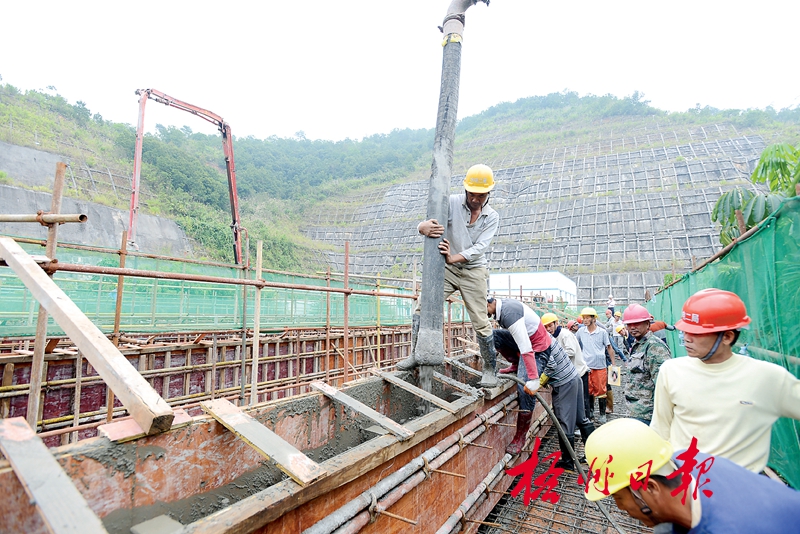 ??? 12月2日,在梧州市第二污水處理廠,施工人員正在澆筑水解酸化池主體。