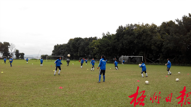 12月7日,內蒙古赤峰體校隊隊員在梧州體訓基地訓練場進行足球基本功訓練。李欣鞠 攝