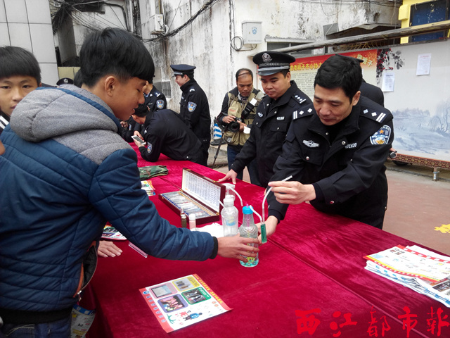當(dāng)天的活動中,公安民警向參觀者展示毒品吸食工具,提醒群眾防范毒品、拒絕毒品。西江都市報記者 黃海志/攝
