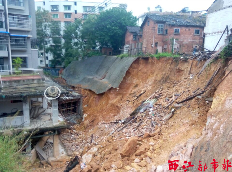 ????西江都市報(bào)訊(記者 紀(jì)榮蘭 通訊員 梁月芬 李雪燕)11月底,位于富民三路23-26號(hào)富民小區(qū)2號(hào)樓北側(cè)的擋土墻,受連日大雨及坡腳開挖、機(jī)械振動(dòng)等影響,出現(xiàn)大面積崩塌,造成坡頂上一間瓦房倒塌。近日,梧州地質(zhì)環(huán)境監(jiān)測(cè)站到現(xiàn)場(chǎng)調(diào)查,并給出整治建議。