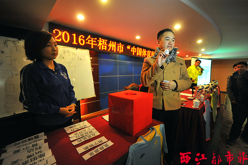 各參賽隊伍的領隊在賽前抽簽儀式上抽出球隊對陣次序。西江都市報記者 何鎏/攝