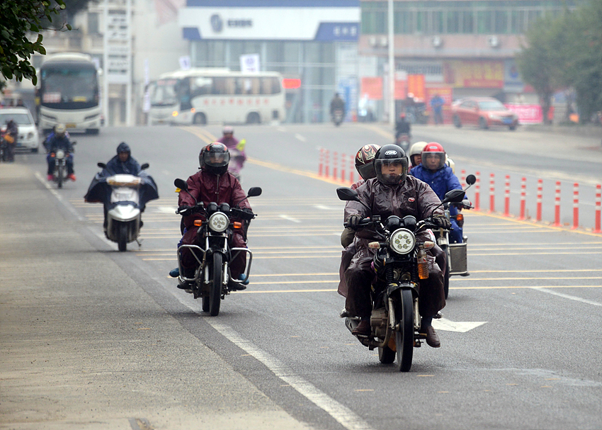 據了解,隨著企業在節后陸續開工,途經梧州往廣東的摩托車近日較為密集。19日,我市出現小雨天氣,公安交警部門提醒,雨天道路濕滑易發生意外,返程務工人員要小心駕駛確保安全。 李鴻榮 攝