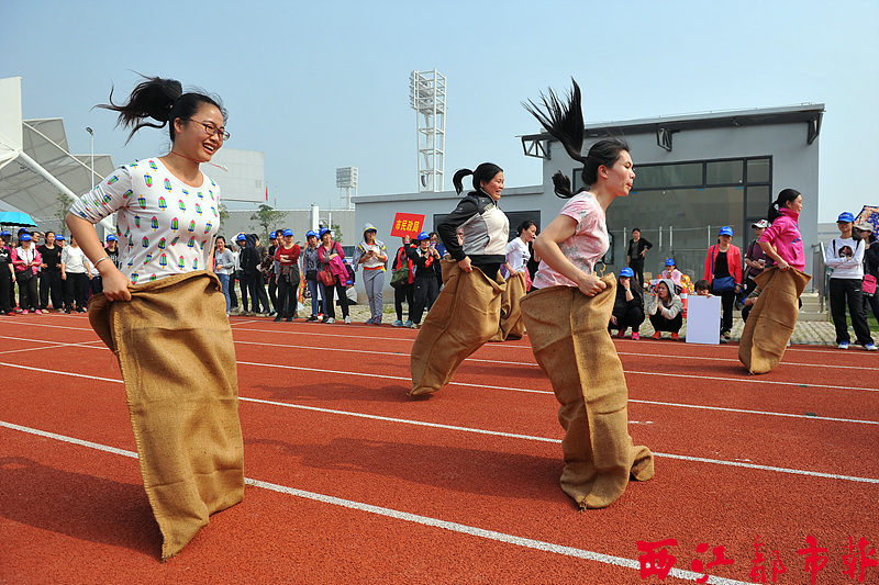 ????當日,梧州市第四屆婦女趣味運動會在梧州市中恒體育場副場內(nèi)舉行。來自梧州市各行各業(yè)的約1300名婦女運動員到場參加了“三人四足”、“拋接繡球”、“多項接力”等8個項目的趣味體育比賽,在笑聲與汗水中迎接“三八”國際勞動婦女節(jié)的到來。 西江都市報記者 何鎏 通訊員 胡亮 /攝