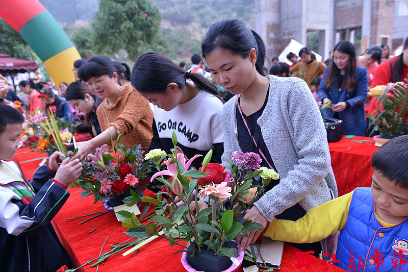 ????當天,岑溪市文明辦、總工會、團市委和婦聯(lián)聯(lián)合舉辦“情系‘三八’婦女節(jié)”暨公園里首屆插花比賽,吸引了200 多組選手報名參賽。 (陳海文/攝)