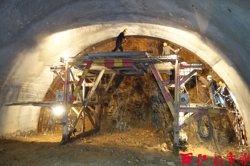 近日,施工人員正在梧州市環(huán)城高速公路下潭隧道已開(kāi)挖的作業(yè)面上焊接鋼拱架,對(duì)隧道進(jìn)行初期支護(hù)以承接山體的壓力。