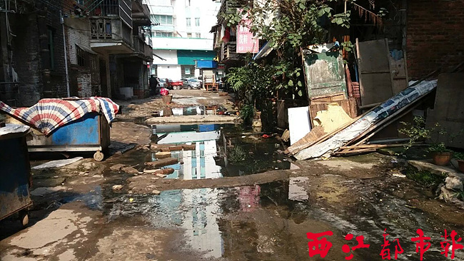 ????由于此處居民樓十分老舊,污水渠得不到及時清淤,個別地方又出現塌陷,所以就出現了污水渠經常堵塞的情況了。覃師傅曾與奧奇麗社區方面協商,建議由城區政府進行解決,也給出了整治方案供有關方面參考。 |