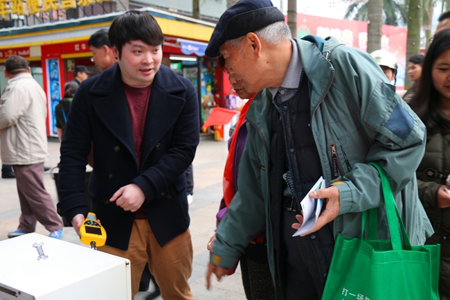 市民駐足觀看并了解電磁輻射知識。張璐 攝
