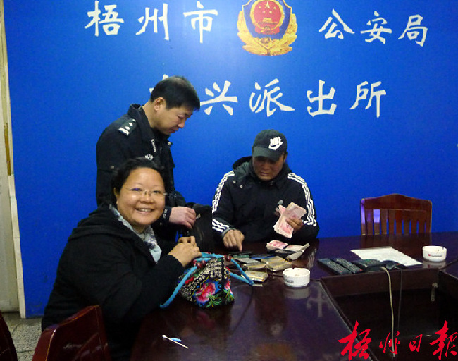 ????“前幾天,有一個梧州人在外地出差,他撿到一個包包,內有大量現金和銀行卡,最后,那個人竟然將包包帶回了梧州,交到了東興派出所警察蜀黍手上!為什么他要將包包帶回梧州交給蜀黍呢?你猜啊……”