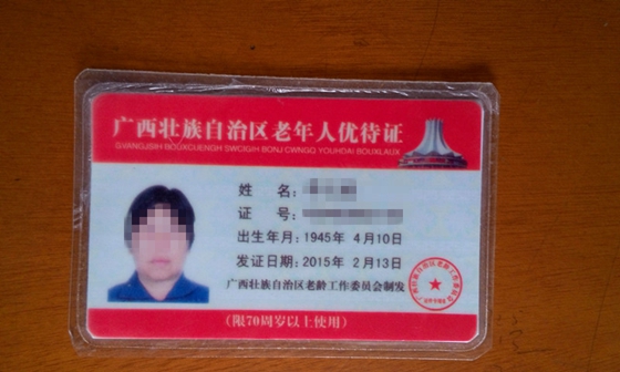 ??? 西江都市報(bào)訊(記者 龍?zhí)靷鳎┻m齡老人持《廣西老年人優(yōu)待證》,可在公交、醫(yī)療、景點(diǎn)景區(qū)等方面享受優(yōu)惠待遇。然而,記者日前從梧州市珍寶巴士有限公司獲悉,乘客持偽造《廣西老年人優(yōu)待證》乘車的情況頻現(xiàn)。另外,記者走訪發(fā)現(xiàn),市內(nèi)部分影印店可提供假證制作服務(wù)且造價(jià)低廉。對(duì)此,有業(yè)內(nèi)人士建議,有關(guān)部門應(yīng)推廣IC卡替代紙質(zhì)卡片,此舉有利于提高證件的防偽程度。