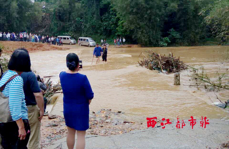 ????13時15分,平福派出所民警在現場看到一片汪洋,堤壩完全被淹沒在洪水中,水深超過50厘米,水流湍急。但是,仍有村民打算開車強行通過堤壩,民警立即拉起警戒線,并高聲勸阻河對岸的村民不要冒險過河。