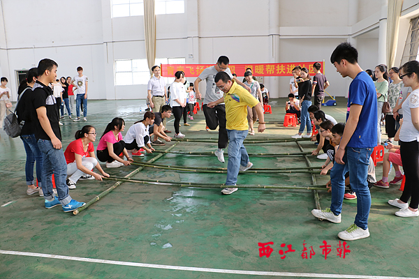 4月16日上午,長洲區紅嶺社區與“雙報到”單位梧州職業學院聯合舉辦結對幫扶系列活動。期間,有關單位與社區內的困難家庭開展結對幫扶懇談會,了解他們的實際困難,還送上標明聯系方式的心連心服務卡,讓彼此間的聯系更加緊密。此外,社區群眾還參與了學院民族特色活動,與志愿者一起展開互動。圖為社區群眾參與竹竿舞游戲。 (通訊員 楊金龍 攝影報道)